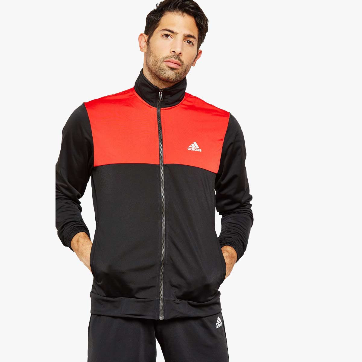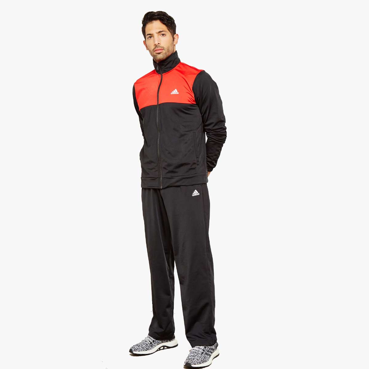 Get the outfit right before you set off to explore newer limits of endurance with this sporty red & black tracksuit from the latest collection of adidas. Thoughtfully crafted in premium, tech-driven polyester for a lightweight feel, excellent comfort and unmatched endurance, it’s classic regular fit accords it the right room for unrestricted movement, while it’s well designed features enhance its functional aspects immensely. Pair it with a light colored crew neck t-shirt to hit the gym in style.