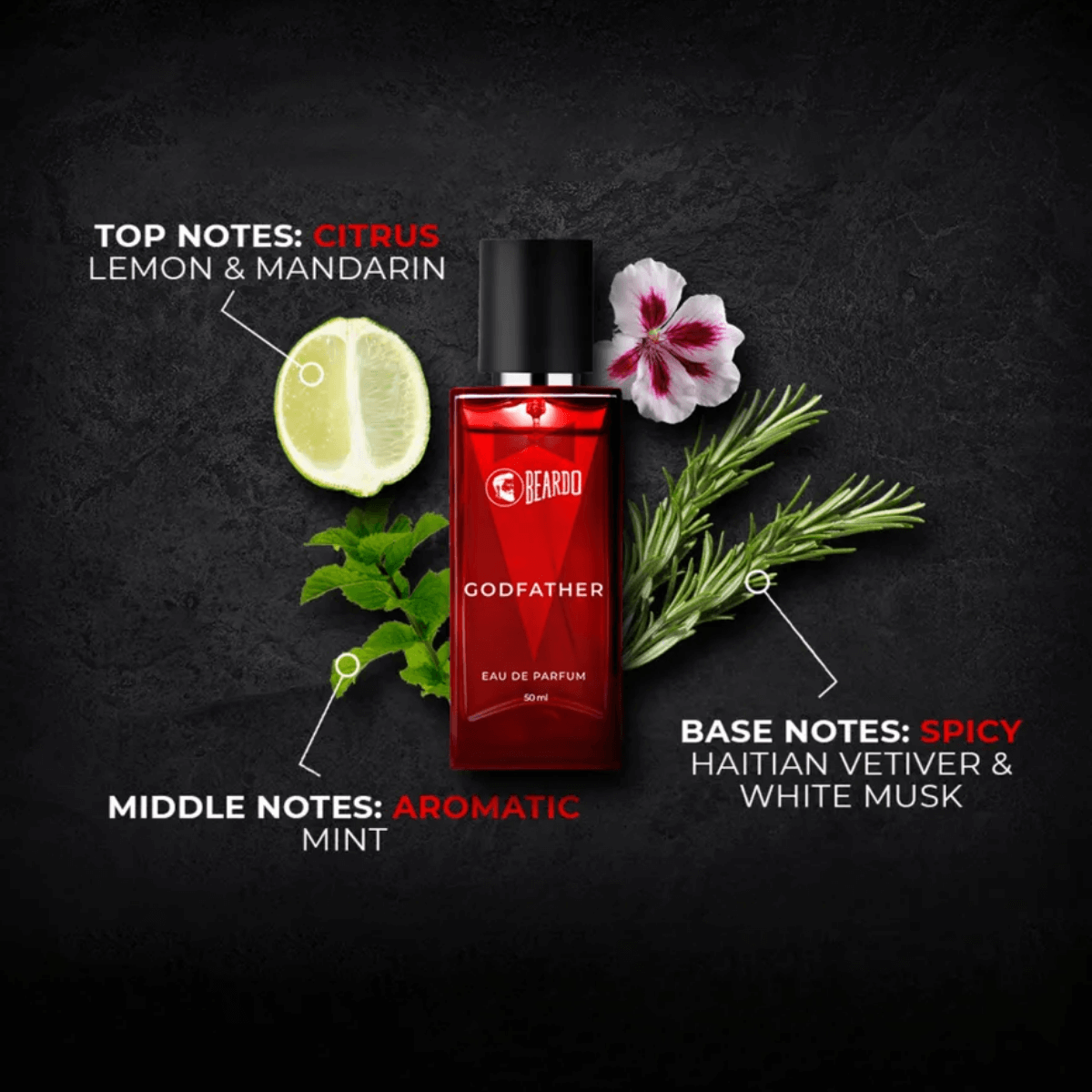 Be prepared to captivate the senses of one and all with the powerful enigma of Beardo Godfather EDP. Beardo Godfather perfume has an alluring and authoritative appeal that instantly overshadows ordinary perfumes. It is a fine concoction of mint and lemon along with an intense and passionate aroma of Geranium flowers and base notes of Vetiver and Musk, which isn’t just strong and long-lasting but also irresistible.