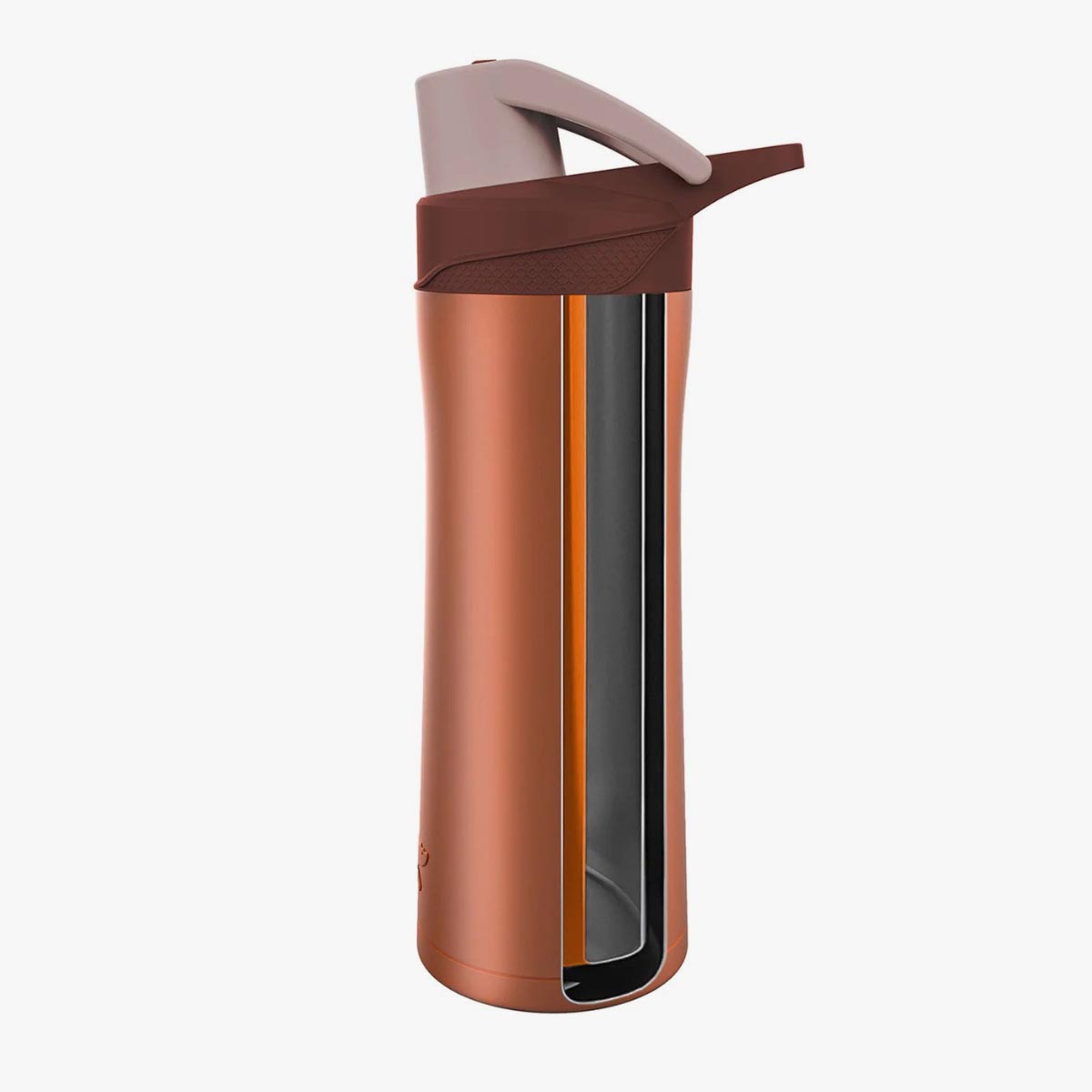 The lid also features a tea infuser. The lid can be easily locked to avoid accidental spills. The lid also features a carry handle which makes it easy to carry around. Comes in attractive designs which include Marble finish and copper finish. The bottle is designed to fit most cup holders.