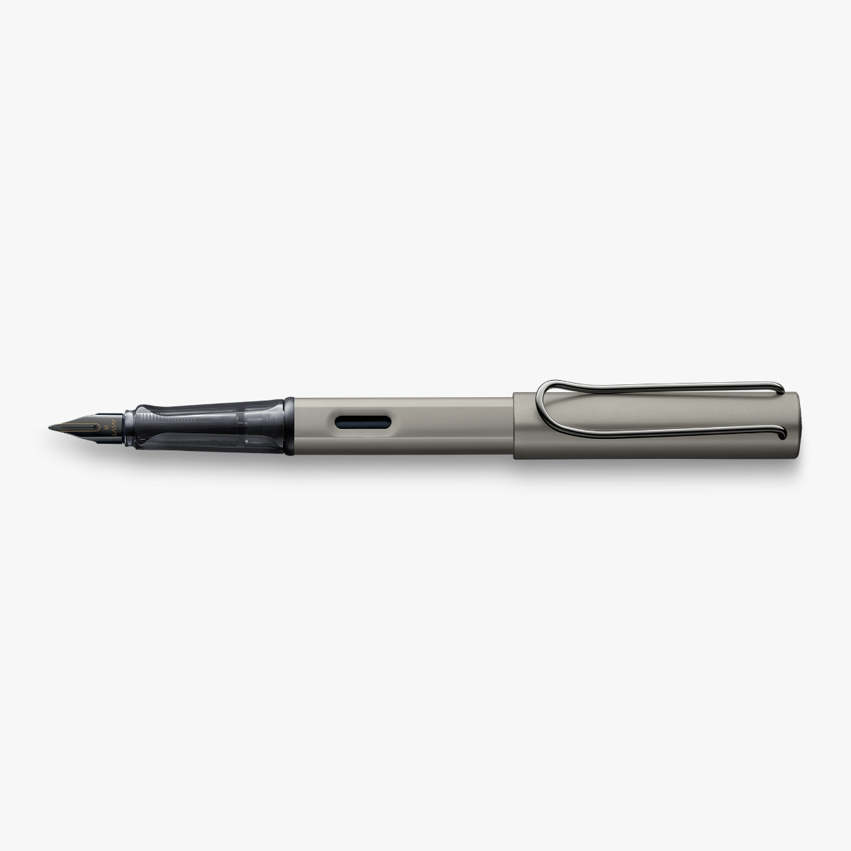 - Fountain Pen / aluminium anodised in ruthenium colour / metal clip and details plated with ruthenium / ergonomic plastic grip / steel nib, black, gloss PVD / with LAMY T 10 blue ink cartridge / With converter Z28