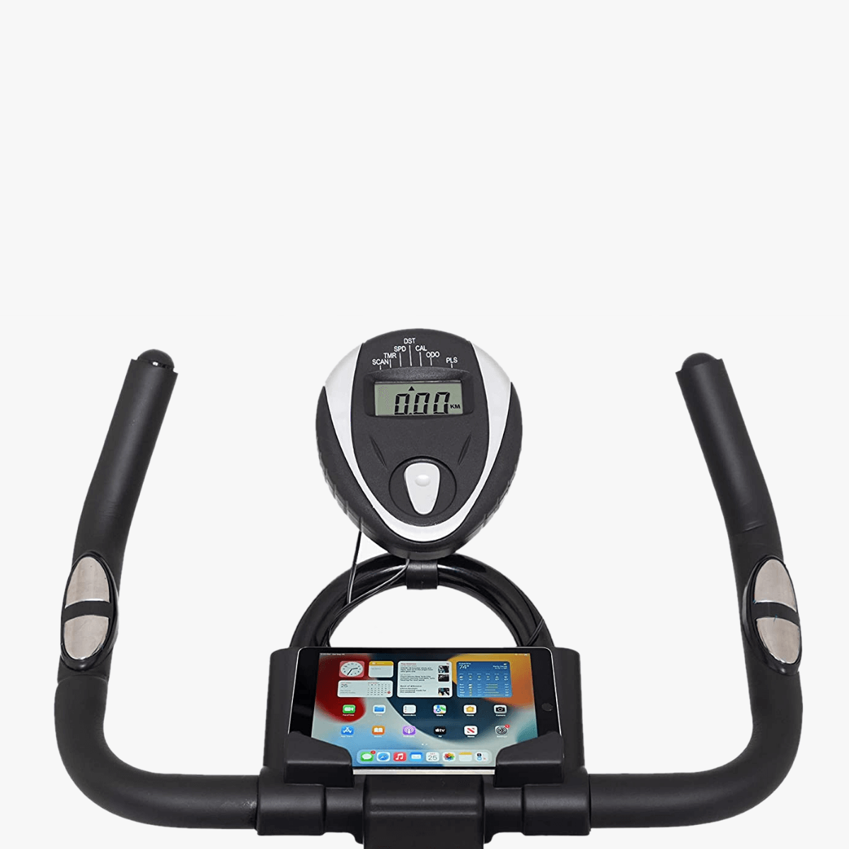 - LCD monitor is necessary for professional exercise bikes like this one. We equip a LCD screen that monitors speed, distance, time, calories and heart rates while riding.