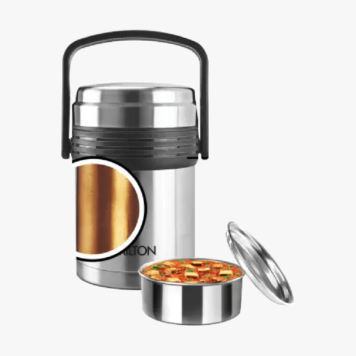 Milton Galore Tiffin Designed to carry your lunch in style vacuum Insulated stainless steel lunch box keeps food hot for long hours. Inside copper coating for better heat retention. It Helps you for Carrying your own home-cooked food to office is both a delicious and nutritious way of consuming your daily meals. The Milton Thermosteel Galore tiffin box is a great solution for carrying these meals in a stylish package. Vacuum Insulation technology for better heat retention. Featuring stainless steel tiffin containers encased in an insulated outer steel body, this set helps keep your meals warm when you are on the go. The well-designed exterior helps you make a unique style statement. It is easy to store, clean and maintain. It has handle for easy carrying, durable and virtually unbreakable construction. This Product Is Under 1 Year Warranty From The Date Of Retail Purchase Against Any Manufacturing Defects In Material And Workmanship. The Warranty Does Not Cover Damages Resulting From Accidents, Mishandling Or Tampering With The Mechanism. Warranty Valid Against Producing Original Bill Endorsed By Seller. For any queries kindly reach customer care number as mentioned on the product packaging along with the proof of purchase